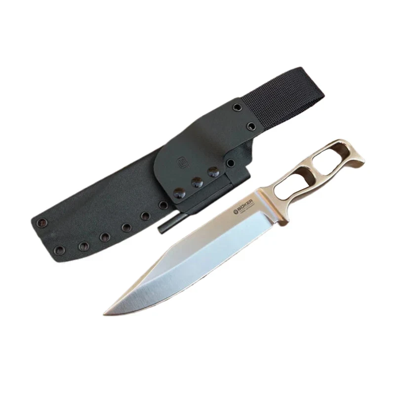Kydex ہولسٹر ایک طرف آئیلیٹس اور دونوں طرف آئیلیٹس میں دستیاب ہے۔ ویلکرو چاقو کو بیگ کے پٹے سے جوڑنے کے لیے مثالی ہے۔ Kydex میان کے علاوہ، میں فائر اسٹیل ہولڈر کو جوڑ سکتا ہوں، اختیاری طور پر فائر اسٹیل (80 ملی میٹر یا 100 ملی میٹر لمبا) کے ساتھ۔